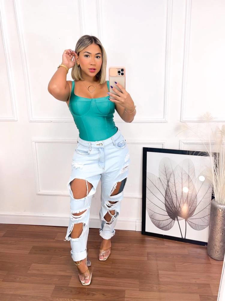 Calça jeans destroyed 100% algodão. Lavagem clara. recomenda-se em caso de variação de numeração pedir um numero maior.