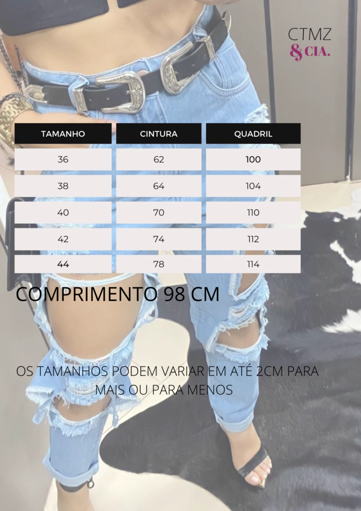| TAMANHO | CINTURA | QUADRIL |