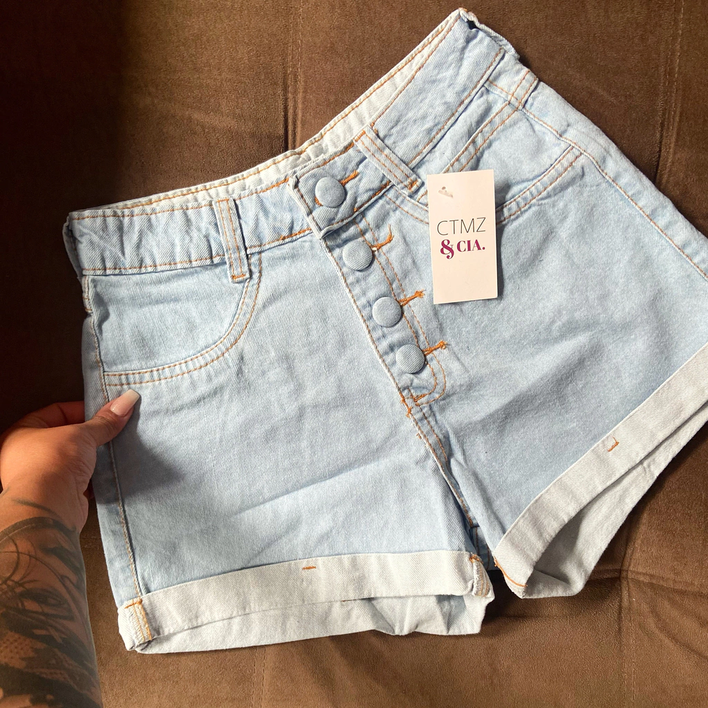 Jeans 100% algodão. Com botões encapados. Barra dobrada.